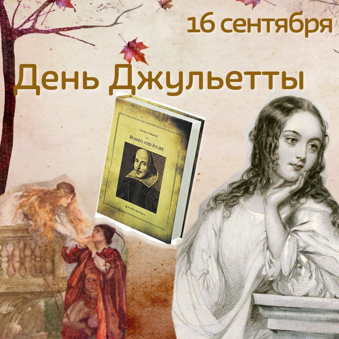 🗓Этот день в календаре. ♥️16 сентября в итальянском городе Вероне отмечают праздник – День рождения Джульетты, знаменитой шекспировской героини самой печальной повести на свете - трагедии «Ромео и Джульетта». В Верону до сих пор приходят письма от всех влюбленных, адресованные Джульетте, с просьбами дать совет или напутствие в нелегкой любовной ситуации. Также сегодня отмечается: 🌳Международный день охраны озонового слоя; ☦️День памяти святой Евфимии. В этот день много лет назад: ⚔️645 лет назад (1380) одержана победа русскими войсками в Куликовской битве; 🌟280 лет назад (1745) родился Михаил Кутузов, русский полководец, генерал-фельдмаршал.; 🎉69 лет назад (1956) родился Дэвид Копперфильд, американский иллюзионист и шоумен. 🪽16 сентября празднуют именины Алексей, Андрей, Василиса, Василий, Владимир, Ефим, Иван, Илья, Константин, Михаил, Николай, Петр, Роман, Сергей, Филипп.