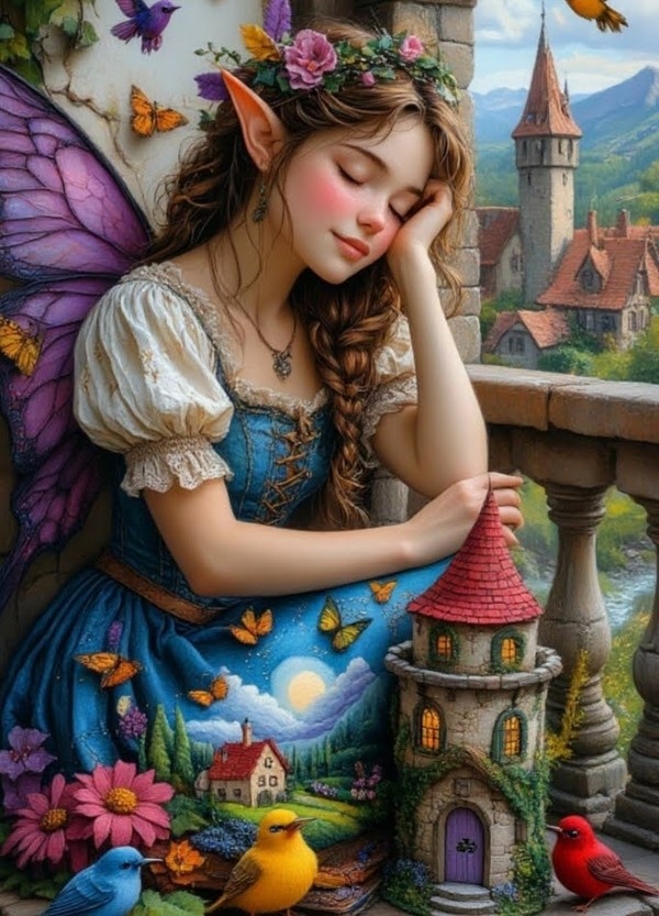 Как-то летом на балконе, мне приснился чудный сон - уподобилась персоне, из эльфийских городов. * Я не я, а эльф ушастый, в сарафане голубом. Хорошо не зверь клыкастый, с длинным, красным языком. * Вокруг бабочки порхают, птички весело поют. Вьются розочки по краю, на балконе шик, уют. * Эльф девчонка в дрёме сладкой, щёчку давит кулачок, губки смазаны помадой, в волосах цветной венок. * Я во сне спала так сладко жаль не вспомню, как потом, оказалась на кроватке - в сарафане голубом. * Огляделась, моя спальня, и за шторами балкон. Признаюсь - сентиментальна, слёзы хлынули ручьём. * Нет эльфини на балконе, вмиг исчез куда-то сон. Разбудил меня в итоге, зазвонивший телефон. * Картинка сгенерирована нейросетью в шедеврум * © Copyright: Адилия Моккули, 2025 Свидетельство о публикации №125090707681