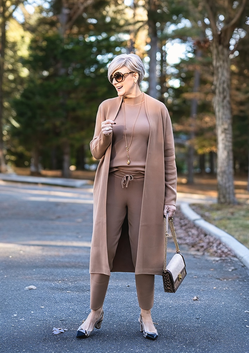 Что особенно радует — коричневый невероятно выигрышно смотрится на зрелых женщинах. Он согревает лицо, делает кожу более свежей и создаёт ощущение дорогого, продуманного стиля. При этом работает практически с любым цветотипом, нужно только правильно подобрать оттенок.