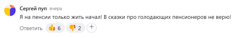 Я пишу про маленькие пенсии, а мне не верят. Некоторые пишу, что на пенсии у них только жизнь наладилась. Этому могут позавидовать большинство пенсионеров. А многие покупают в магазине одну картошку, морковку и один лук. Потом делят по частям, чтобы сварить обед или ужин. Я сама видела, как одна бабушка стояла на кассе и перебирала дражайшей рукой мелочь, чтобы заплатить за 1 картошку. Да, она была больше чем кулак, но все же. На две пенсии живут, но экономят по старой привычке. А вдруг срочно лекарства понадобятся? Это молодым кажется, все так просто. Они не часто болеют. А в пожилом возрасте только успевают пенсионеры относить пенсию в аптеку. Я не в коем мере не сужу правительство. Напротив, я за Россию, я люблю свою страну. За несколько лет видно, что мир меняется в лучшую сторону, но пенсионеров, почему то забывают. Сравнить, что было в девяностых и сейчас! Так мы живем в лучшие времена. Особенно молодые, которых теперь берут везде курьерами, официантами для подработки. Хочу