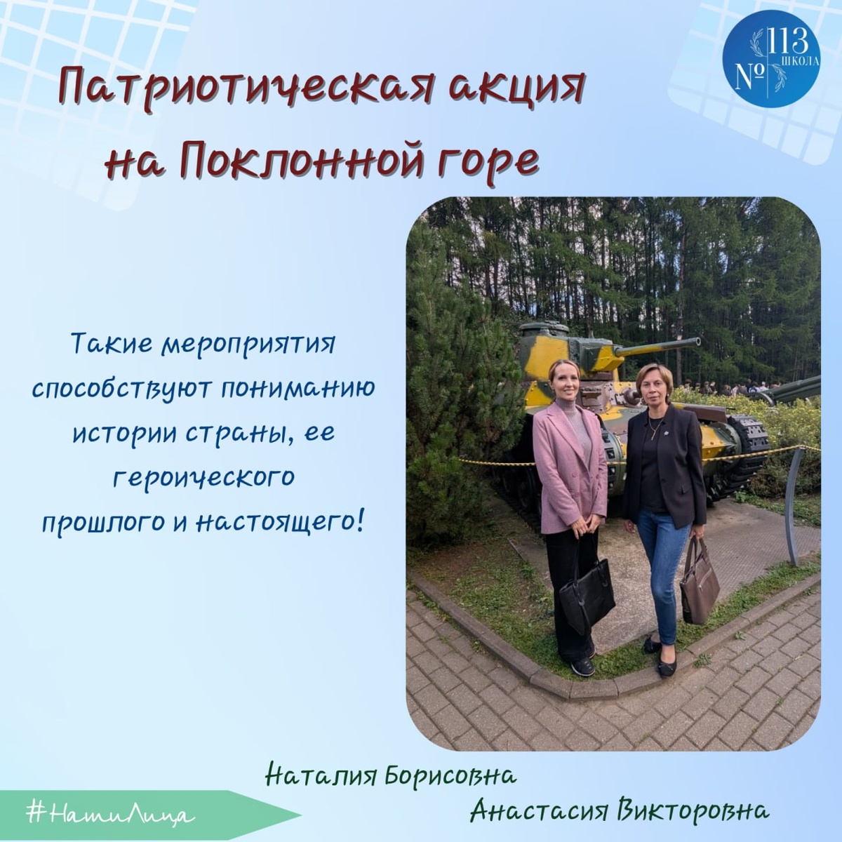 🗓 В преддверии Дня города наши десятиклассники, советник по воспитанию Наталия Борисовна и педагог –организатор Анастасия Викторовна побывали на патриотической акции на Поклонной горе. Мероприятие прошло в рамках всероссийского конкурса на лучшую подготовку граждан Российской Федерации к военной службе.
