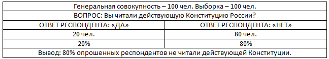 При обработке результатов одинаковые ответы суммируются в специально приготовленных таблицах. Например: