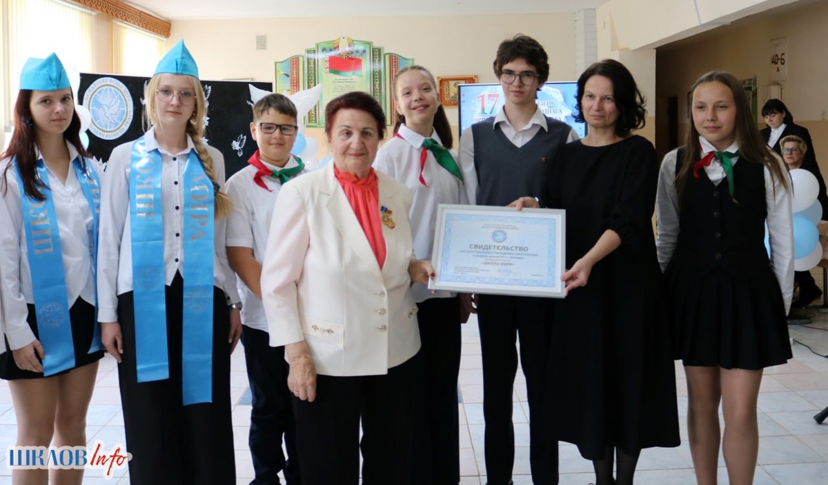 ✅Почетными гостями праздника стали председатель правления Могилевского областного отделения ОО «Белорусский фонд мира» Андрей Никитин, заместитель председателя Шкловского райисполкома Ирина Раинчик, начальник отдела по образованию Шкловского райисполкома Татьяна Лодова и, конечно же, почетный ветеран труда Вера Костенко. Именно из рук Веры Феофановны Свидетельство о присвоении статуса «Школа мира» было вручено директору учреждения образования Ольге Дрозд. ✨Вера Феофановна – почетный член правления Национального фонда мира Республики Беларусь, дважды кавалер ордена «Знак почета», обладатель золотой медали Ассоциации фондов мира стран СНГ. Это мудрый, достойный, великодушный человек, который своим примером всегда показывал, как надо служить Родине, как надо служить человеку. А в этом и есть высший смысл миротворчества.