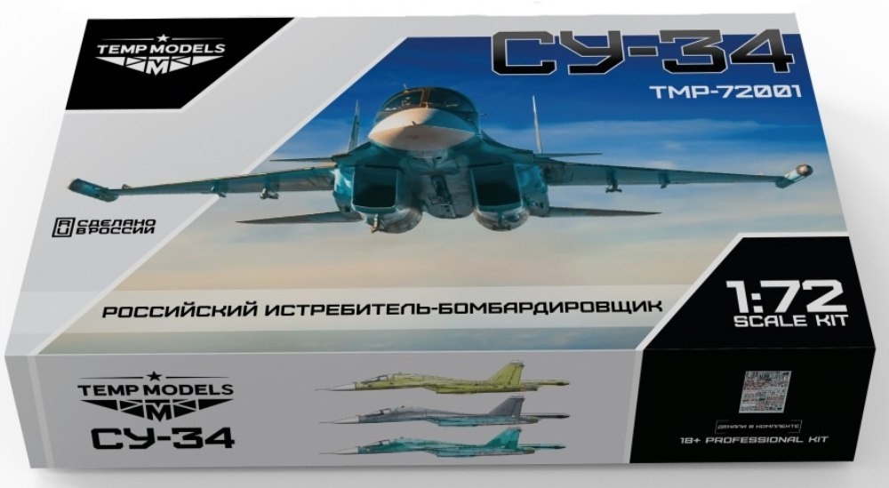 Тemp Мodels из Москвы показала сборку своей выращенной на 3D-принтере модели Су-34 в масштабе 1/72: Су-34 (каталожный номер ТМР-72001)