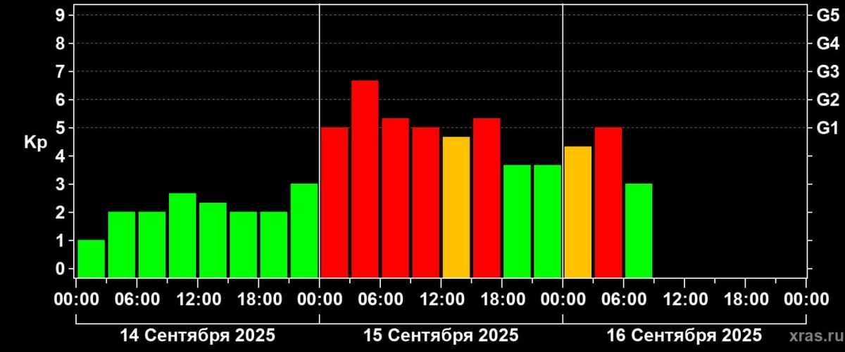 16 сентября 2025 года, между 3 и 6 часами утра, на Земле прошла повторная магнитная буря в результате воздействия корональной дыры, образовавшейся на Солнце.
