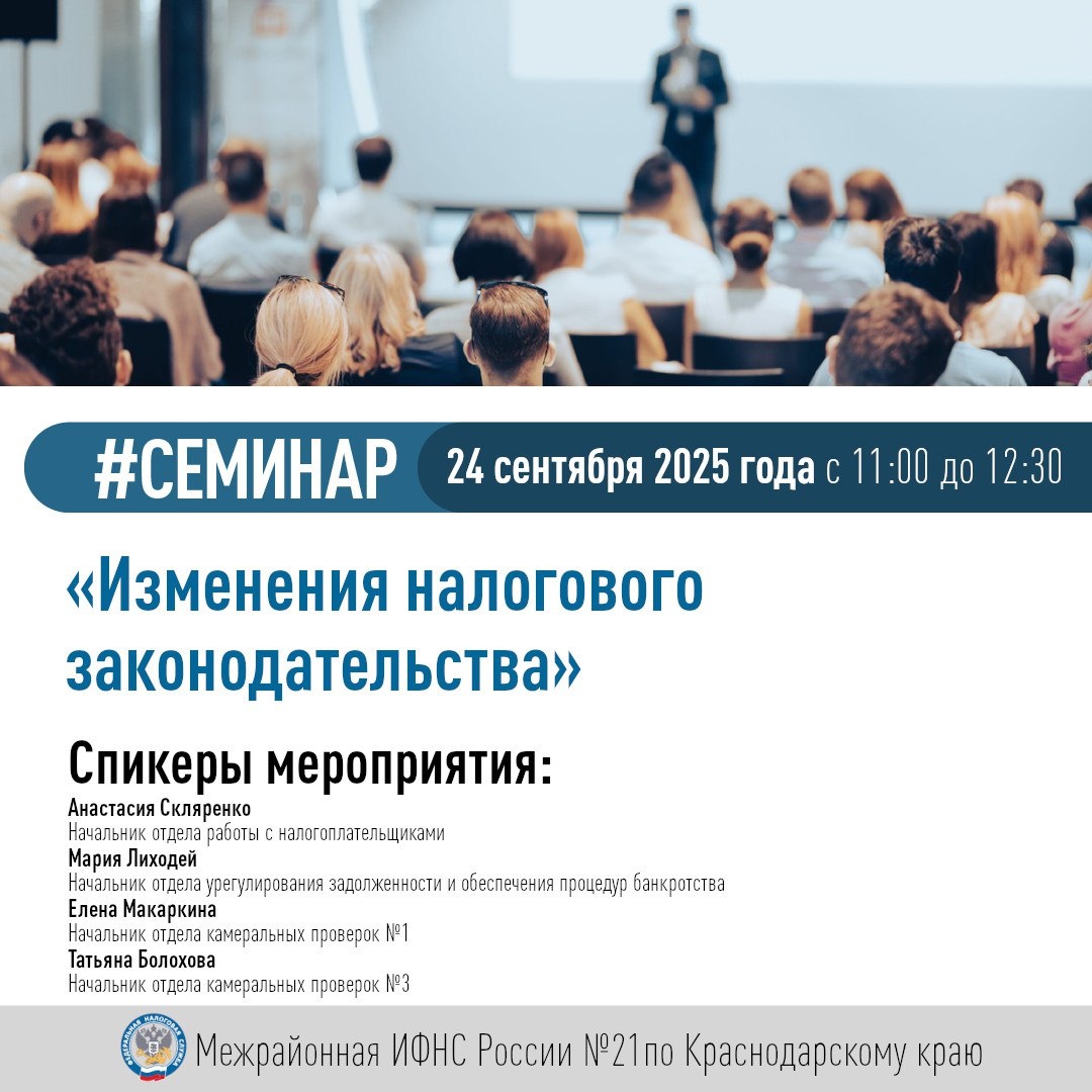 ✅24 сентября на семинаре разъяснят актуальные изменения в налоговом законодательстве