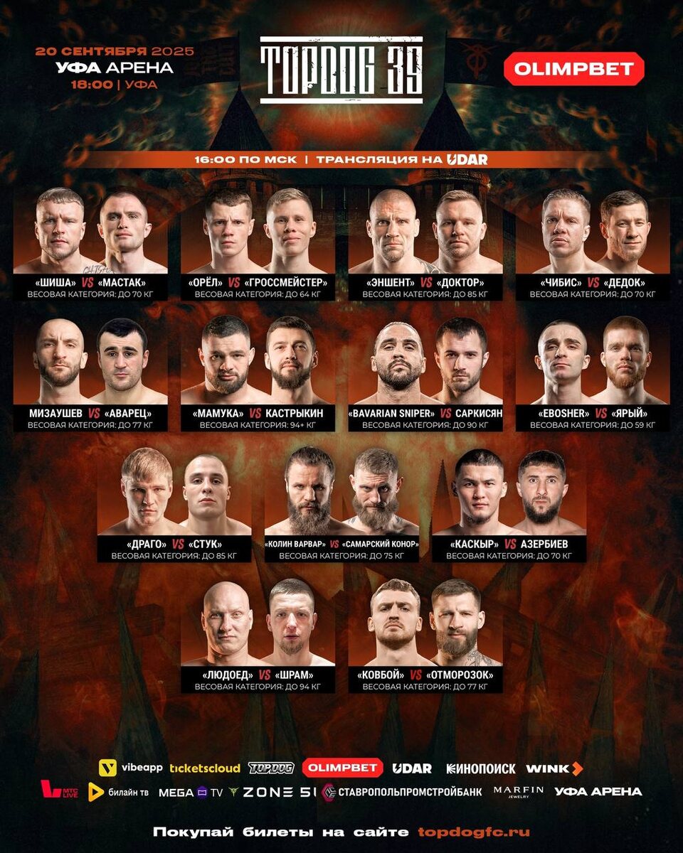 Кард турнира TOP DOG 39: Шиша vs Мастак 20 сентября! Начало прямого эфира в 16:00 по Москве! Где смотреть ❓⬇ ™️В нашей группе ВКонтакте - vk.com/wall-180162102_261960 Видеосервис Wink - wink.ru/tv/udar Кинопоиск - hd.kinopoisk.ru/channels?c... Билайн ТВ - beeline.tv/ НТВ-ПЛЮС - ntvplus.tv/channel/udar-681 🇺🇿 Телеканал UDAR в Узбекистане TelecomTV - telecomtv.uz 🇧🇾 Телеканал UDAR в Республике Беларусь KOT TV - www.kottv.by/ 🇧🇾 Телеканал UDAR в Республике Беларусь T1-Групп - t1group.by/ 🇰🇿 Телеканал UDAR в Казахстане - Кинопоиск подписка Яндекс Плюс - раздел спорт hd.kinopoisk.ru/sport/ 🇰🇿 Телеканал UDAR в Казахстане Alma TV- www.almatv.kz/tarify/ 🇰🇬 Телеканал UDAR в Киргизии MEGA TV - megacomtv.kg/ 🇰🇬 Телеканал UDAR в Киргизии O! TV - otv.kg/channel/64... 🇦🇲 Телеканал UDAR в Армении - wink.am/tv