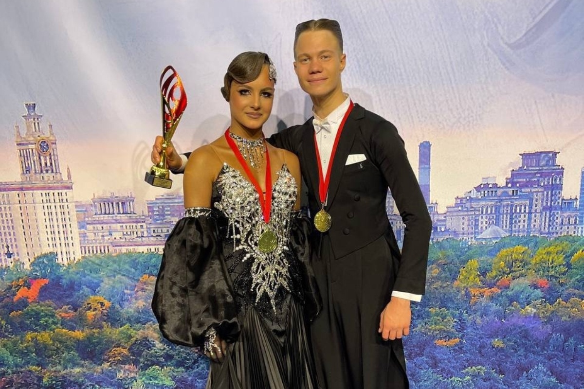 Святослав Иванов и Варвара Кучеренко (Тверь, КСШОР № 1) поднялись на высшую ступень пьедестала почета в категории «Молодежь-2» среди пар до А-класса мастерства по европейской программе танцев (на заглавном снимке).