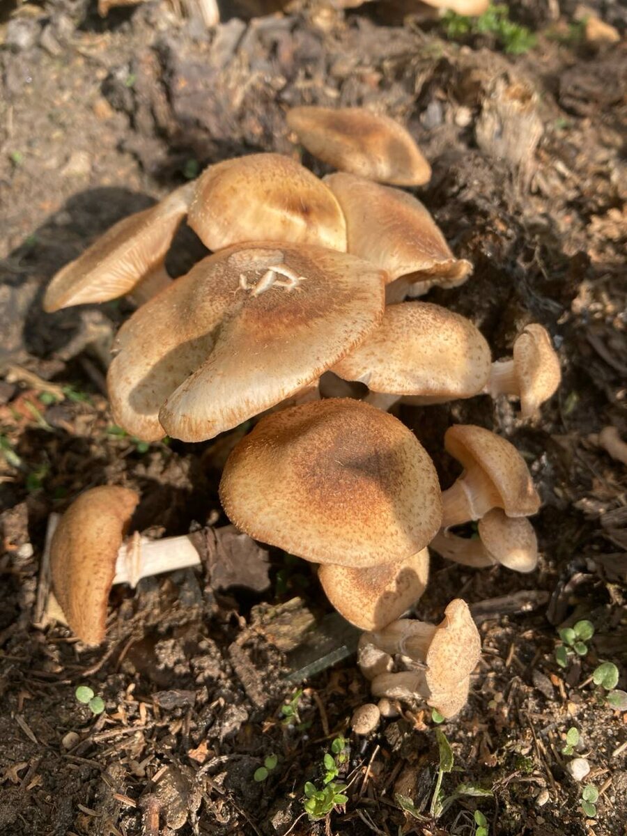 Этот год у нас очень богат на грибы. И а лес ходить не нужно. Вот выросли на старом, полуперепревшем пне. Гугл подсказывает, что это опенок осенний. Я в опятах совсем не разбираюсь. Может есть знатоки, подскажите, он ли это?