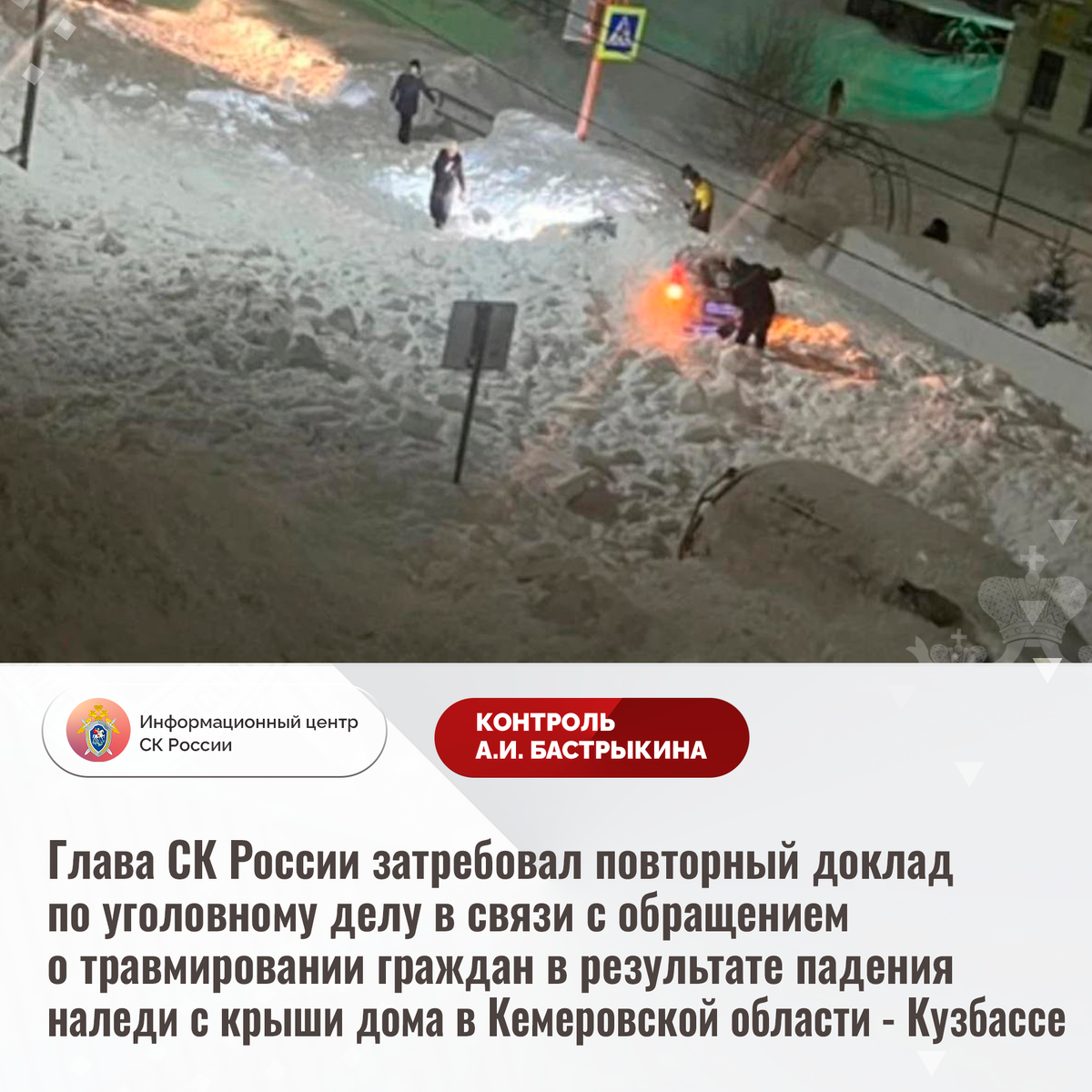 Глава СК России затребовал повторный доклад по уголовному делу в связи с обращением о травмировании граждан в результате падения наледи с крыши дома в Кемеровской области - Кузбассе