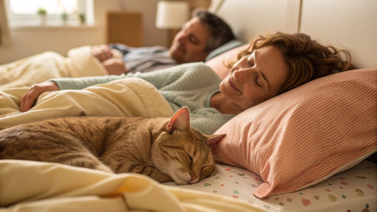 Кошки чувствительны к движениям спящего человека. Если партнер часто ворочается, встает по ночам или храпит, животное найдет более спокойное место.
