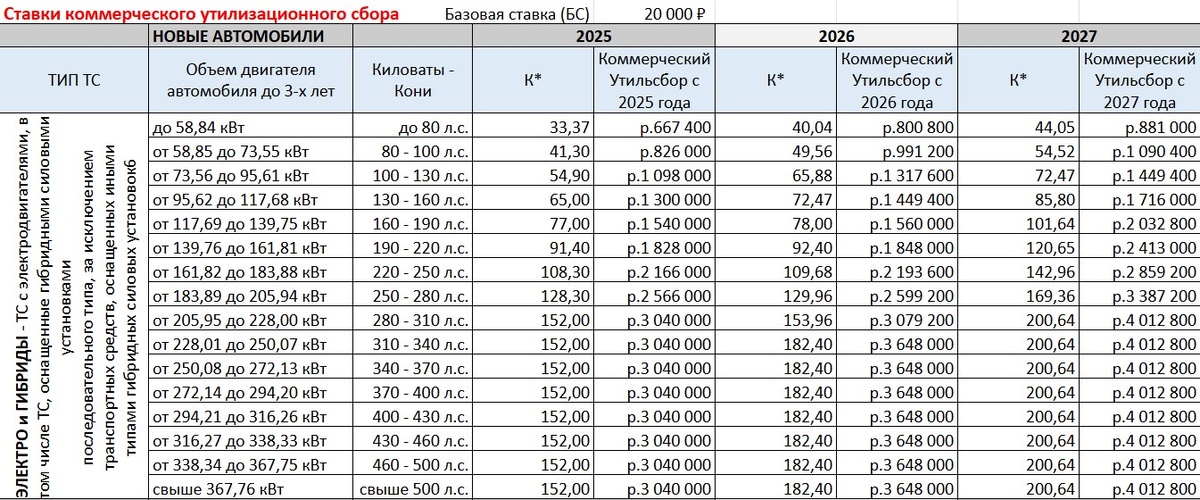 Более точно размер утилизационного сбора можно посмотреть в таблице по ссылке, вкладка «1 ноября 2025»: https://docs.google.com/spreadsheets/d/1GNr0S2odl8C397nyUFPb3uNlxxG1spU_FzNMTW9ErAM/edit?usp=sharing