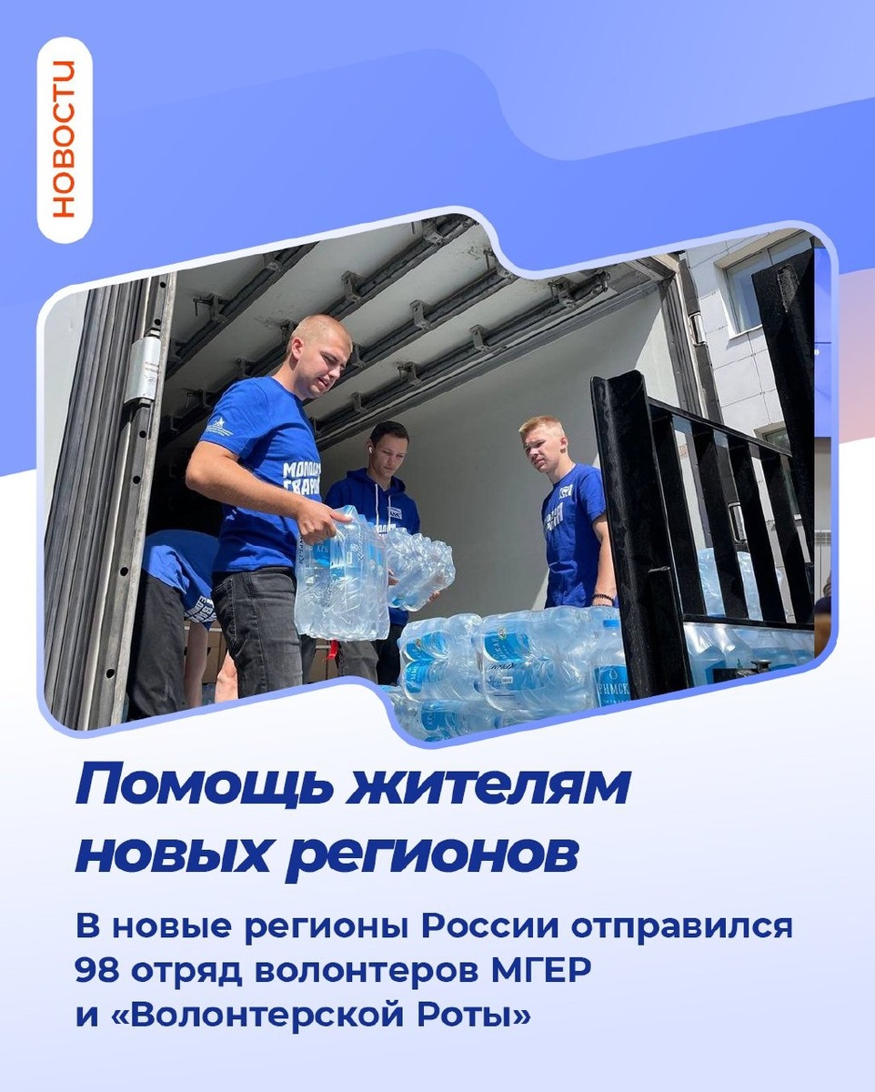 🙏 В новые регионы отправился очередной десант волонтеров Молодой Гвардии Единой России и «Волонтёрской Роты». Молодогвардейцы организуют праздники для педагогов и детей ко Дню работников дошкольного образования. 📝 Также волонтеры будут помогать местным жителям, работать в больницах, госпиталях и пунктах временного размещения. Если вы так же хотите помочь, обращайтесь в ближайшее к вам отделение Молодой Гвардии Единой России или напишите в группу МГЕР. #ЕдинаяРоссия #СвоихНеБросаем #МГЕР