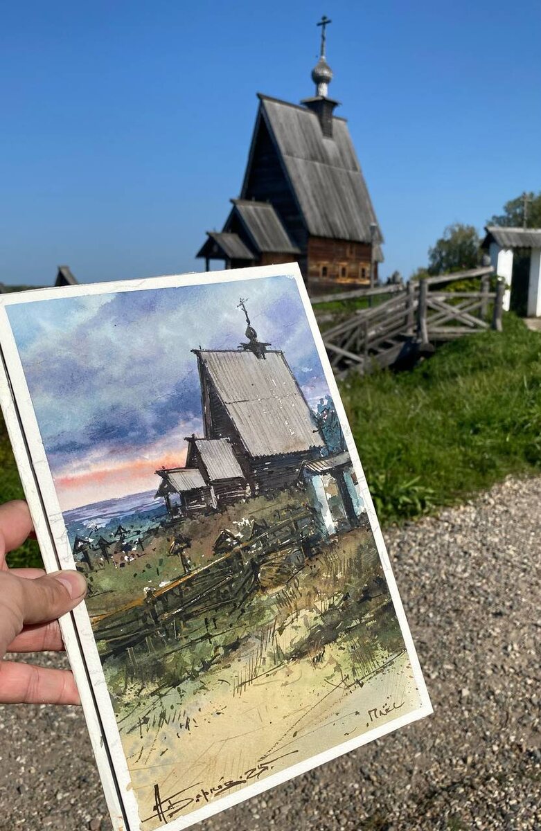 Написал сегодня вот Воскресенская церковь. Плёс #Акварель #рисунок #живопись #пейзаж