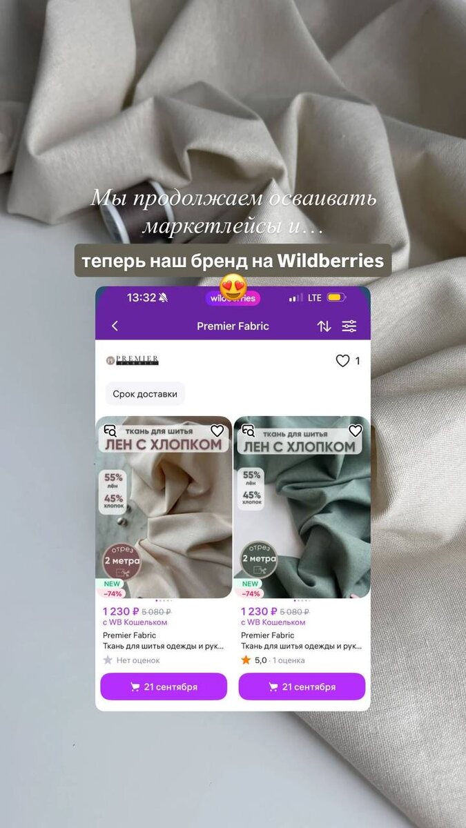 Мы вышли на еще один маркетплейс🥰♥️ Теперь наш бренд можно найти не только на Ozon и Яндекс.Маркет, но и на Wildberries🔥 Сейчас там представлен лён с хлопком, но мы будем постепенно добавлять туда и другие артикулы! Чтобы найти наши ткани на WB, переходите по ссылке😇