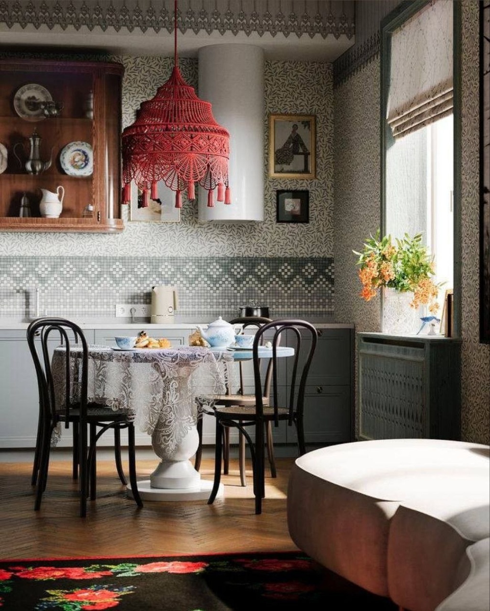 Русский стиль или "а-ля рус" вызывает интерес сегодня как при оформлении загородных домов, так и городских квартир. Что характеризует русский стиль? Это привнесение в интерьер аутентичных черт исторического оформления крестьянской избы. Причём отделка может быть нейтральной, стилистика привносится за счет материалов, текстур и декора. Черты русского стиля: - использование природных материалов - дерево, камень, глина, керамика - применяемая палитра - цвета народных промыслов (гжель — белый и голубой; хохлома — черный, красный, золотой, зеленый и голубой; жостовская роспись — белый, красный, зеленый и голубой). - использование народных орнаментов в узорах плитки, настенных панелей. Стены и потолки могут быть украшены традиционной росписью. Часто орнаментом украшают изголовье и основание кроватей. Резные наличники применяются как настенный декор и украшение подпотолочного пространства. Наличники также используются для отделки дверного проема, зеркала или фальшокна на стене - полы могут бы