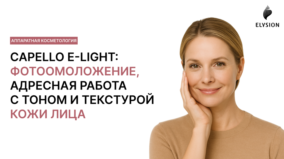 В клинике Elysion в Москве появился новый аппарат: Capello E-Light — система, которую ценят за сочетание эффективности и комфорта. Короткие сеансы, адресная работа с тоном и текстурой, предсказуемое восстановление — именно то, что нужно коже в межсезонье. Capello E-Light помогает выравнивать тон и микрорельеф, работать с пигментацией и покраснением, делать кожу визуально более «собранной» и упругой. Отдельное направление — фотоомоложение лица: о нём расскажем более подробно. Всего за несколько сеансов процедура фотоомоложения на аппарате CAPELLO E-Light способна ликвидировать дефекты, с которыми люди безуспешно борются годами, а порой и десятками лет – проявления акне, пигментные пятна, сосудистые сетки и звездочки, расширенные поры и мелкие морщины. Во время сеанса насадка аппарата передаёт коже короткие серии вспышек и мягкое радиочастотное тепло. Свет работает адресно — помогает «подсветить» участки с пигментом и поверхностными сосудистыми проявлениями, а RF равномерно прогревает тк