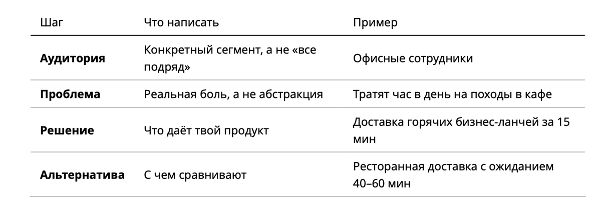 Формула: Для [аудитория], у которых [проблема], наш продукт [решение], в отличие от [альтернатива]. 📊 Визуализация формулы: 📊 Примеры из бизнеса 1. Ozon (e-commerce, B2C):