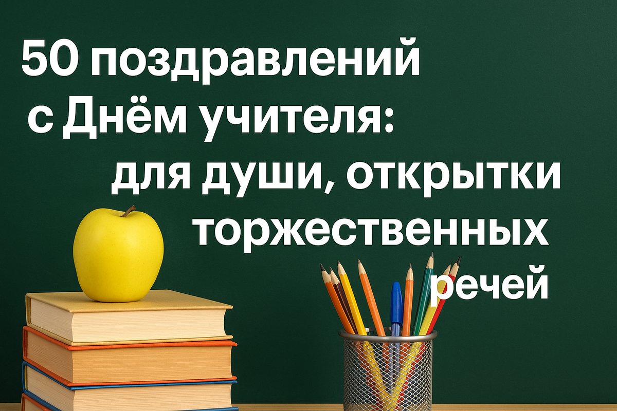 День учителя — один из самых тёплых и уважаемых праздников осени. В этот день хочется найти правильные слова, чтобы выразить благодарность тем, кто открывает дорогу к знаниям и становится настоящим наставником для детей. Мы собрали 50 поздравлений для разных ситуаций: от душевных до лаконичных, от торжественных до лёгких с улыбкой. Здесь каждый найдёт подходящие слова для открытки, мессенджера, праздничной речи или дружеского обращения. Идеи хороших подарков для учителей вы найдете в нашей подборке «День учителя» на сайте podarki.ru. День учителя — это повод ещё раз вспомнить, как много значит труд педагога для каждого из нас. Правильные слова поздравления — это не просто формальность, а настоящий знак уважения и благодарности. Выберите из этих 50 поздравлений то, что ближе именно вам: тёплое, официальное, торжественное или с лёгкой улыбкой. Главное — сказать учителю «спасибо» так, чтобы он почувствовал, что его труд действительно ценят.