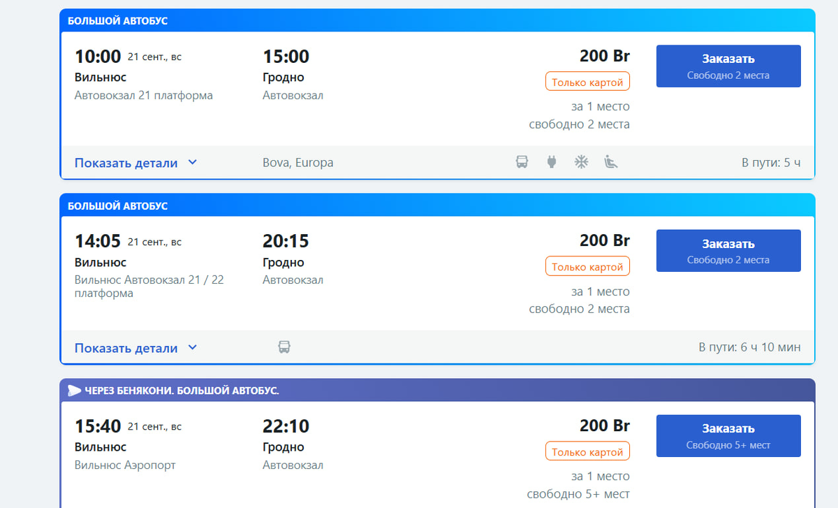 Спрос на билеты в Вильнюс из белорусских городов растет. Цена, отметим, осталась прежней. На сайте и в приложении Атлас доступны билеты в Вильнюс из Минска и Гродно по цене в 200 рублей. Столько же они стоили и до закрытия польской границы.