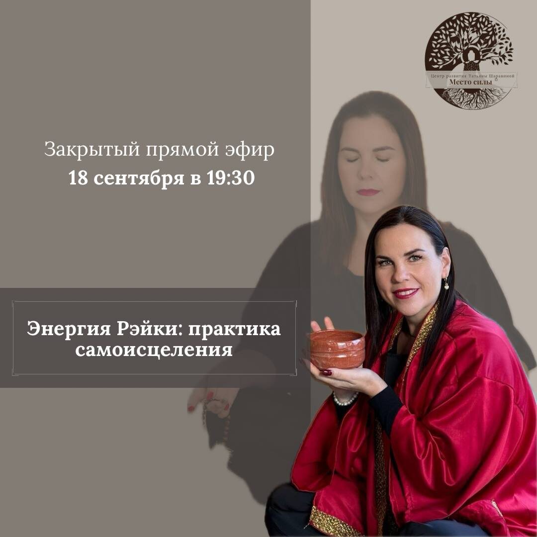 🕊 Сила общего круга 🕊 Когда мы объединяемся в общем намерении, целительный поток многократно усиливается. Именно поэтому приглашаю вас на встречу, где мы вместе создадим мощное поле для исцеления при помощи Рэйки! Когда: 18 сентября в 19:30 Где: Закрытый эфир (ссылка придёт после оплаты) 🗝️ Это не лекция. Это глубокое погружение, где мы: ✨ Объединимся в единый поток, чтобы каждый участник почувствовал поддержку и силу общего круга. ✨ Проведём мощную практику самоисцеления, направленную на снятие свежих телесных зажимов и эмоциональных блоков. ✨ Поработаем с общим намерением на гармонию, наполнение ресурсом и освобождение от тревог. ✨ Вы почувствуете поддержку не только Мастера, но и всей группы, что ускорит ваши внутренние процессы. Этот эфир для тебя, если ты: ➡️ Чувствуешь себя энергетически истощённой и нуждаешься в перезагрузке. ➡️ Застряла в круговороте тревожных мыслей и хочешь обрести покой. ➡️ Хочешь на практике ощутить, как работает коллективная энергия. ➡️ Готова по