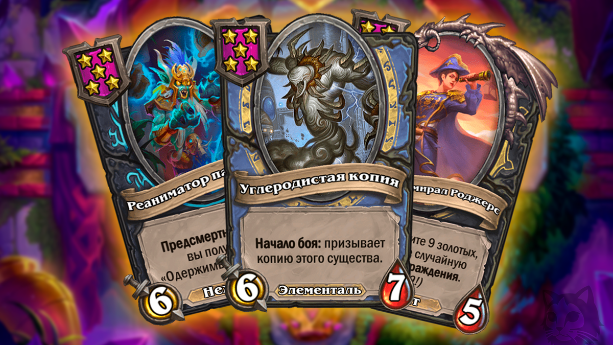 #2 Ключевые карты пиратов через вознаграждения — это, конечно, Адмирал Роджерс и Гордый корсар. Только когда обе эти карты появляются на столе, сборка начинает работать по-настоящему. Сборке очень полезен Бранн — больше потраченных монет, больше активаций Роджерса, больше двойных вознаграждений. Впрочем, когда Роджерс и Корсар становятся золотыми, монеты становятся практически бесконечными, и Бранн может уступить свое место на столе картам поздней игры. Важно усилить заклинания, чтобы вознаграждения на статы приносили больше пользы. Лучшими тут будут Кудесник и Мыслительница. За ход разыгрывается очень много заклинаний, поэтому на столе отлично смотрится нага Матриарх, прокачивающая всем здоровье, и Крюкохвост, который дает всем атаку. Связка Роджерса и Корсара может стать основой других сборок, например элемов или драконов. В идеальной игре с драконами к пиратам довольно рано должен прийти Пробудитель, чтобы начать прокачивать свой эффект. Также на столе должны появиться Чарокрыл и Поэты, статы уходящих карт желательно сохранить при помощи заклинания Пожирания. Похоже играют и элемы: все статы передаются в Копию при помощи Призывателя и Схода лавины.