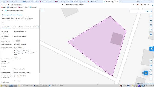 Название: Земельный участок, площадью 1852 кв.м., кадастровый номер 35:25:0403035:234, расположенный по адресу: Вологодская область