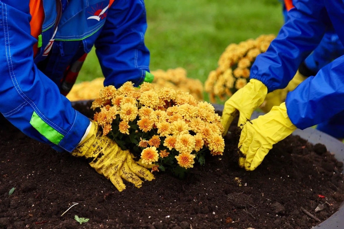 Оформление хризантемами осенью применяется садовниками впервые. Это способ добавить яркости и уюта, а также продлить ощущение лета до заморозков. Хризантема мультифлора идеально подходит для этих целей. Всего в районе высадят 731 куст растения.