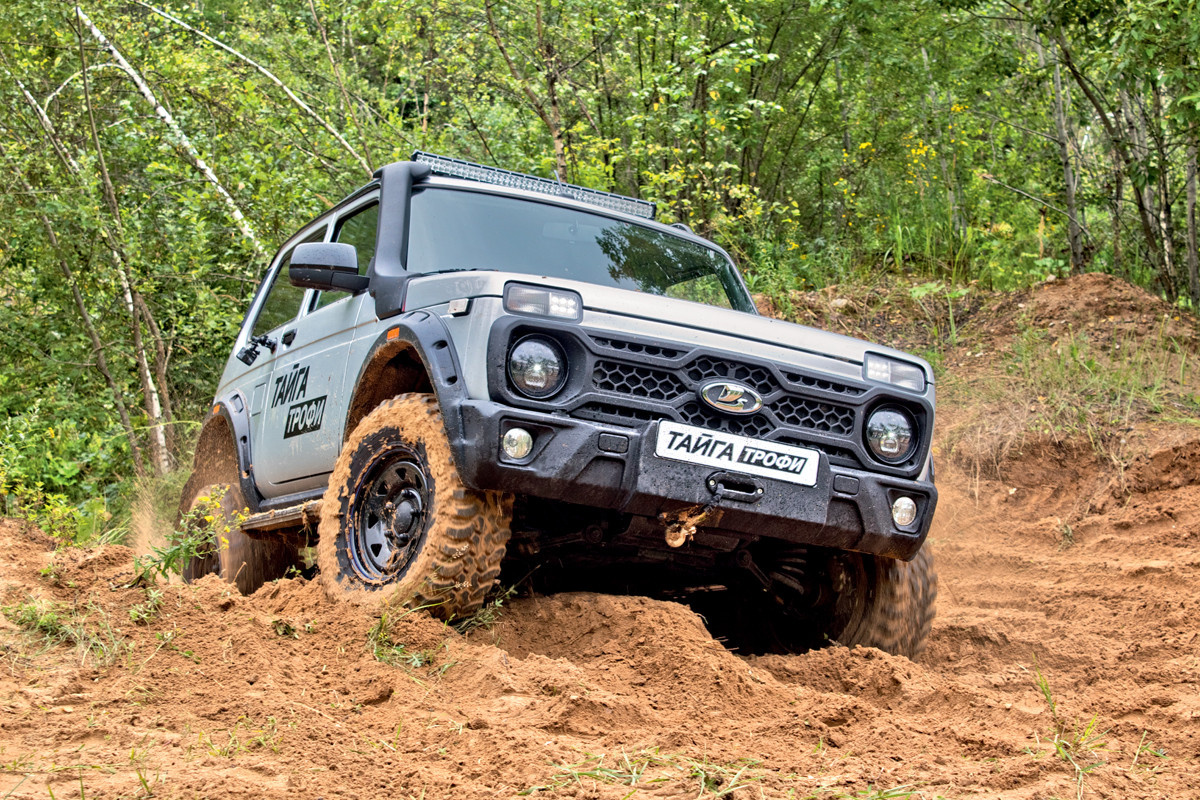 Фирменная легенда о появлении Нивы Тайги звучит красиво. Один из учредителей Промтеха часто ездил в командировки по России и между делом обращал внимание на то, каким доработкам чаще всего владельцы подвергают свои Нивы. На основе этих наблюдений был составлен перечень самых востребованных переделок — и список фактически стал техзаданием на постройку Тайги. На первом экземпляре Тайги инженеры отработали программу-максимум: в передней подвеске установили сдвоенные амортизаторы, а в салоне перенесли рычаг коробки передач поближе к водителю. Увы, в серию эти доработки не пошли. Знаете, какая из доработок Тайги вызывает наибольший восторг публики? Наружная кнопка отпирания багажника! Чтобы открыть третью дверь, больше не нужно лезть в салон и дергать рукоятку. В подвеске Нивы Тайга — проставки, поднимающие кузов на 30 мм, и амортизаторы с увеличенным ходом штока. Плюс самоблокирующиеся дифференциалы спереди и сзади. Ход задней подвески на отбой у Тайги внушительный, поэтому словить диагона