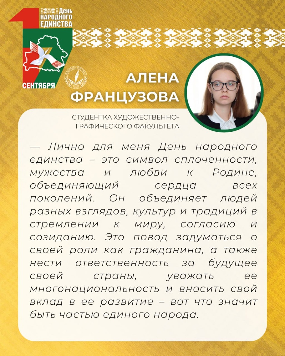 💪Студентка художественно-графического факультета Алена Французова о Дне народного единства