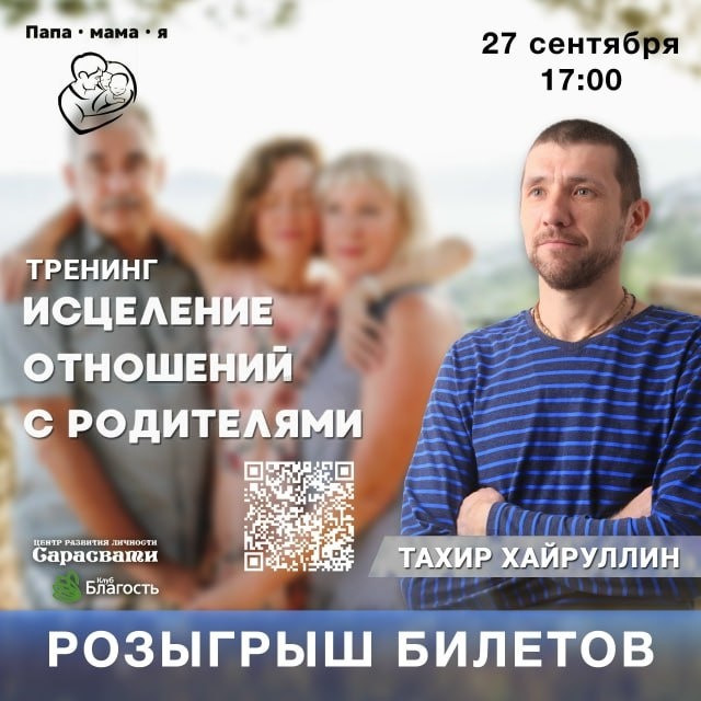 Дорогие друзья, разыгрываем 2 билета на тренинг «Исцеление отношений с родителями»