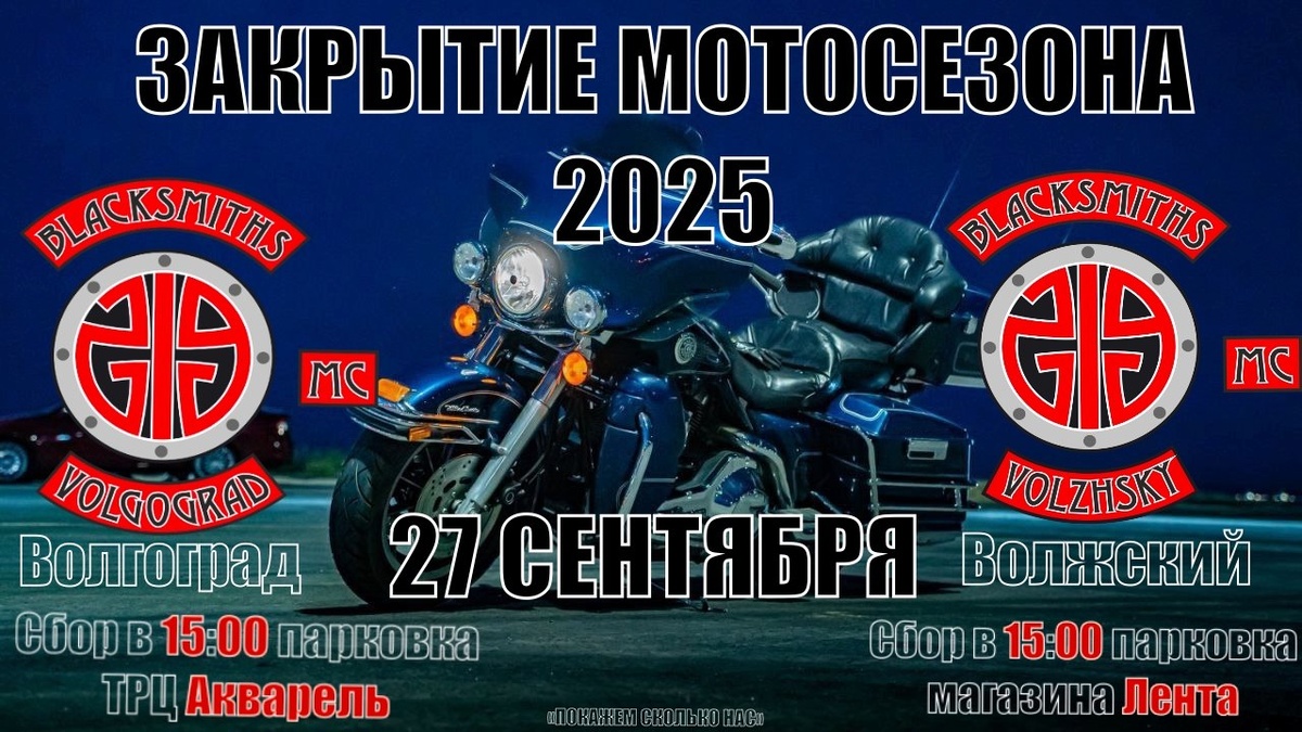 🔁 Дальняк.рф™: Закрытие мотосезона в Волгограде/Волжском 🏍️🔥 Дорогие друзья и любители двухколёсного транспорта! Пришло время поставить точку в нашем ярком сезоне и встретиться вместе, чтобы вспомнить лучшие моменты, поделиться впечатлениями и зарядиться энергией перед зимним отдыхом. ✨ Что вас ждёт: ✨ - Масштабное закрытие сезона с атмосферой настоящего братства и драйва. - Теплая компания единомышленников и новые знакомства среди байкеров и мотоциклистов города. - Возможность провести вечер с друзьями - Проезд колонны по городу ❗Важно: помните о мерах предосторожности и уважайте друг друга на дороге и за её пределами. Приходите, заряжайтесь положительными эмоциями и будьте частью большой семьи волгоградских/волжских мотоциклистов!