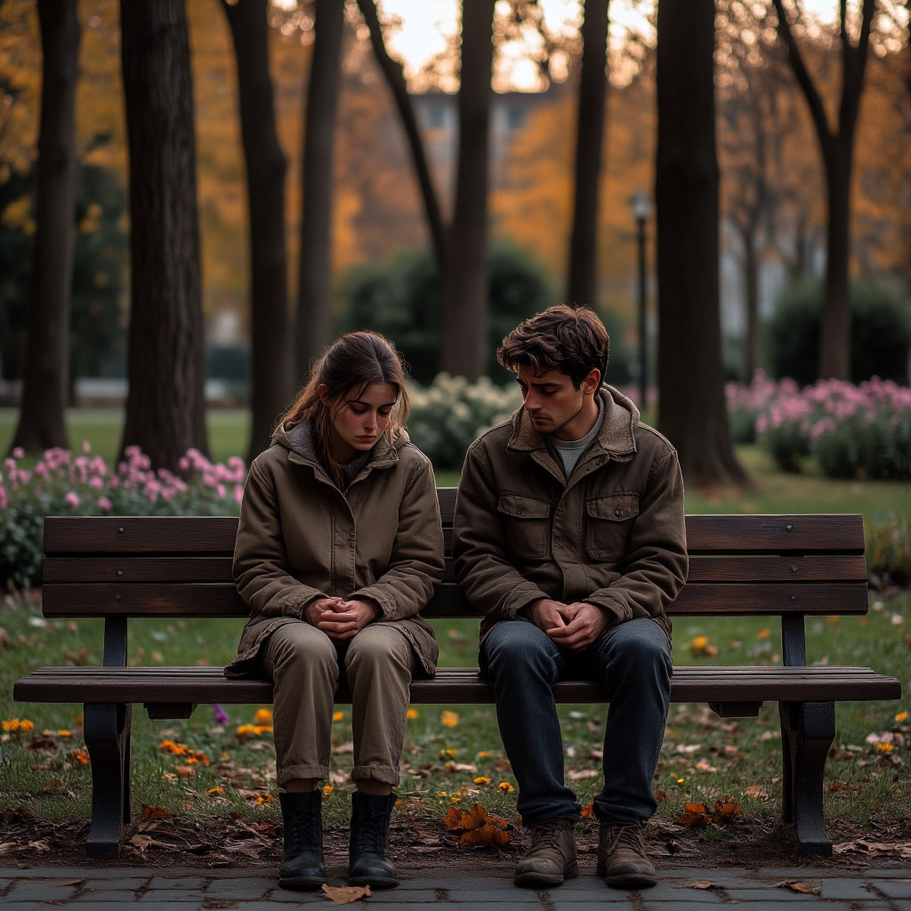 Алекс и Маша решили провести выходной день вместе, отправившись на прогулку в городской парк. Осенний воздух был свежим, листья деревьев переливались золотом и багрянцем, создавая атмосферу уюта и романтики. Они медленно шли по аллеям, обсуждая повседневные темы, наслаждаясь спокойствием природы и обществом друг друга.