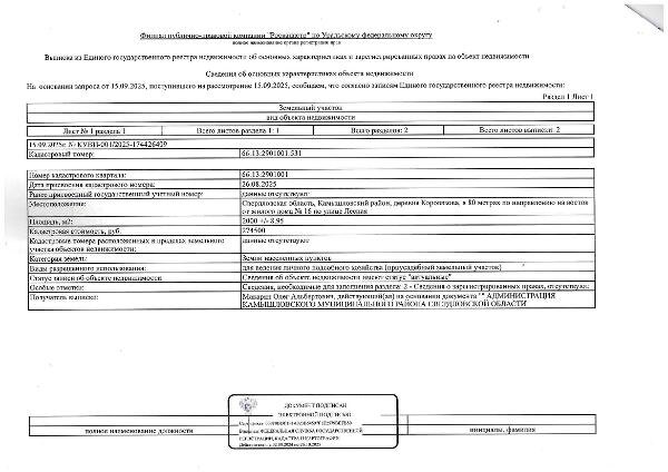 Название: Свердловская область, Камышловский район, деревня Коровякова, в 80 метрах по направлению на восток от жилого дома № 16 по улице Лесная, из категории земель – земли населенных пунктов, общей площадью 2000 кв.м., с кадастровым номером 66:13:2901001:531, разрешенный вид использования: для ведения личного подсобного хозяйства (приусадебный земельный участок). Канал: Госземля Свердловская область Область: обл Свердловская Район: м.р-н Камышловский Населенный пункт: с.п. Зареченское, д Коровякова в 80 метрах по направлению на восток от жилого дома № 16 по улице Лесная Локация: Смотреть на карте ВРИ: Для ведения личного подсобного хозяйства (приусадебный земельный участок) Кадастровый номер: 66:13:2901001:531 Кадастровая стоимость: 274500.00 Вид сделки: Продажа Площадь: 2000 м² Начальная цена: - руб. Дата завершения: 16.10.2025 Подробнее: ГИС ТОРГИ #госземля #земляотгосударства #земля #земельныйучасток #земельныеторги #торги #аукцион #продажаземли #продажа #свердловскаяобласть
