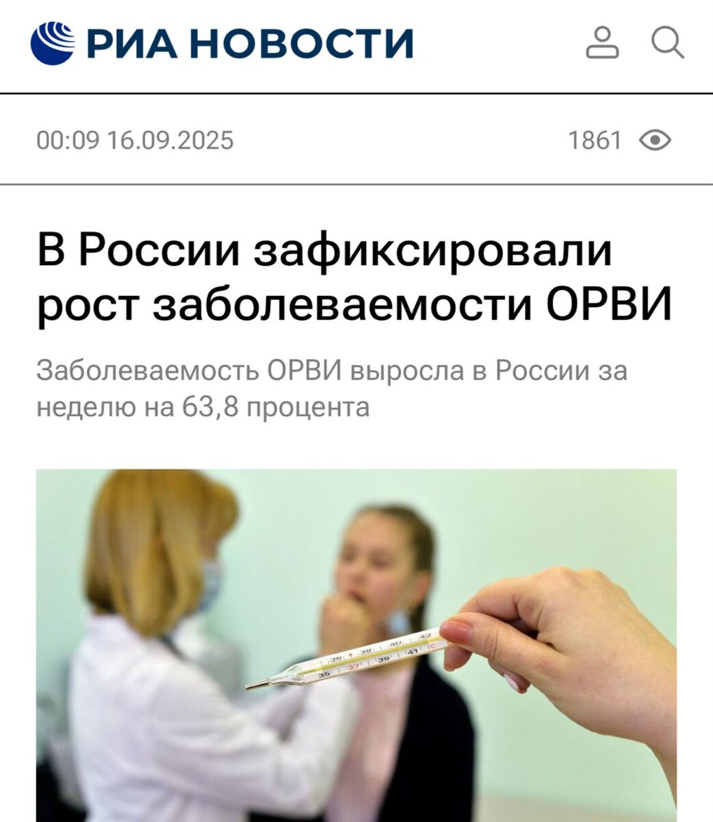 Эпидемия ОРВИ разгорелась в России — число заболевших взлетело сразу на 63% (!) и превысило 696 000 тысяч, заявили в Роспотребнадзоре Больше всего болеют школьники. Среди них зафиксирован двойной рост. По возможности избегаем школотронов.