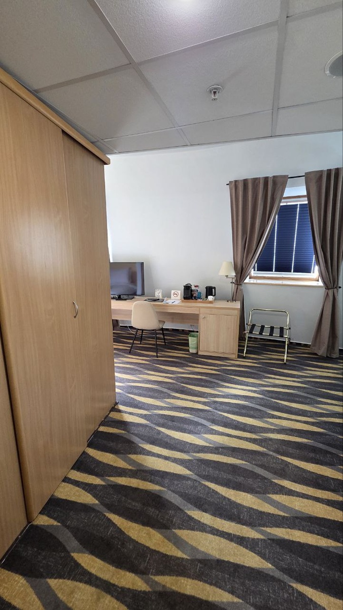 День 3. Executive Room Novotel Moscow Center, №1804 Финальный заезд — на последний, 18-й этаж. Номер категории Executive, вроде как выше классом. Но ощущения получились неоднозначные. Этаж мансардный: потолки заметно ниже, окна меньше раза в четыре. Панорама города есть, но «вау-эффекта» уже нет — после Superior это шаг назад. По оснащению всё знакомо: шкаф с утюгом и сейфом, ванная, рабочая зона, диванчик. Разница — в мелочах. Тут есть капсульная кофемашина, диагональ телевизора шире, а в холодильнике не пустота, а мини-бар с комплиментарными напитками и вкусняшками (сок, вода, шоколад, орешки). В ванной больше косметики (кондиционер, лосьон для тела) и полный набор одноразовых наборов для забывашек — от расчески до бритвенного. Мелочи приятные, да. Но честно? Superior нам показался более комфортным.😒 #novotelmoscowcenter