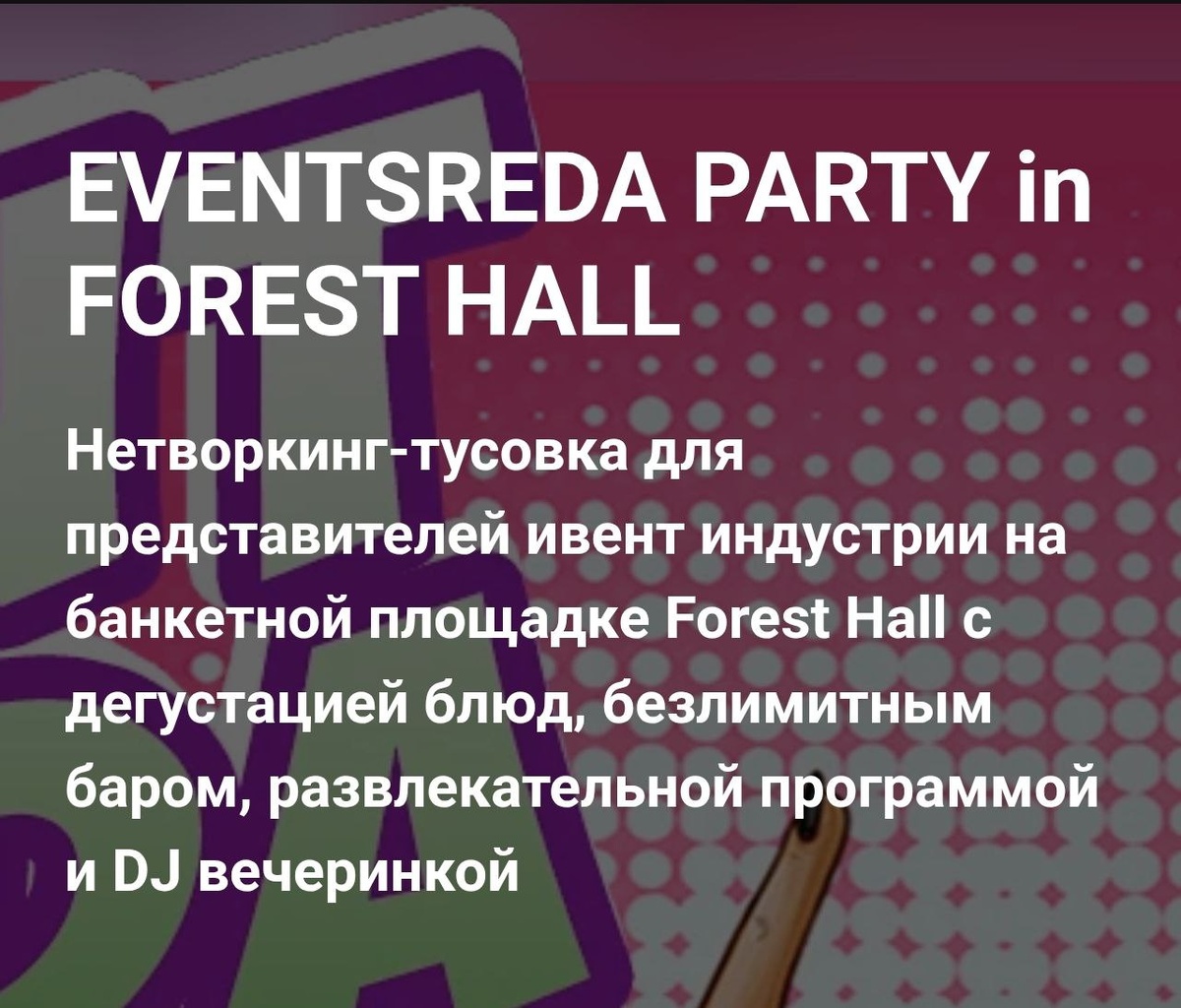 #5октября2025 #Москва ⏰ 17:00-23:00 📍 Forest Hall, Песочная аллея, 7А 💰 Стоимость от 990 руб до 2000 руб, для агентств бесплатно ❗️ Регистрация https://clc.to/rP7Vrg Нетворкинг-тусовка для представителей ивент индустрии на банкетной площадке Forest Hall с дегустацией блюд, безлимитным баром, развлекательной программой и DJ вечеринкой Для кого мероприятие? Представителей агентств, которым важно: ✔️ Пополнить базу ведущих в разных ценовых сегментах ✔️ Посмотреть новую площадку и вкусно покушать ✔️ Познакомиться и обменяться контактами с другими ивенторами ✔️ Посмотреть новый формат развлекательной программы Ведущие, фотографы и др ивенторы, желающие: ✔️ Познакомиться с организаторам и получать больше заказов ✔️ Получить эксклюзивные условия по работе с банкетной площадкой ✔️ Убедиться в качестве банкетного зала и надежности персонала ✔️ Круто отдохнуть в среде коллег по ивент мероприятиям Невест, которые ищут идеальных подрядчиков: ✔️ Познакомиться с ведущими, диджеями, декорат