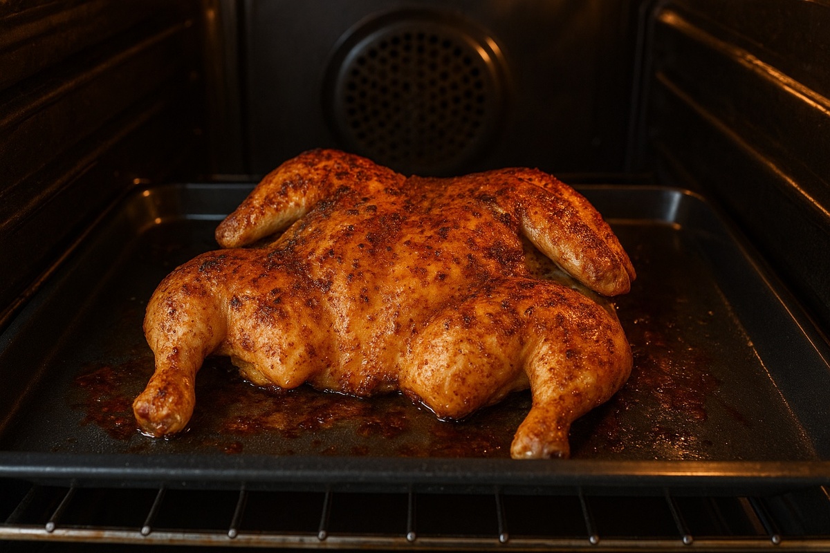 Натри курицу маринадом и оставь на 30–60 минут (можно дольше). - Запекание: