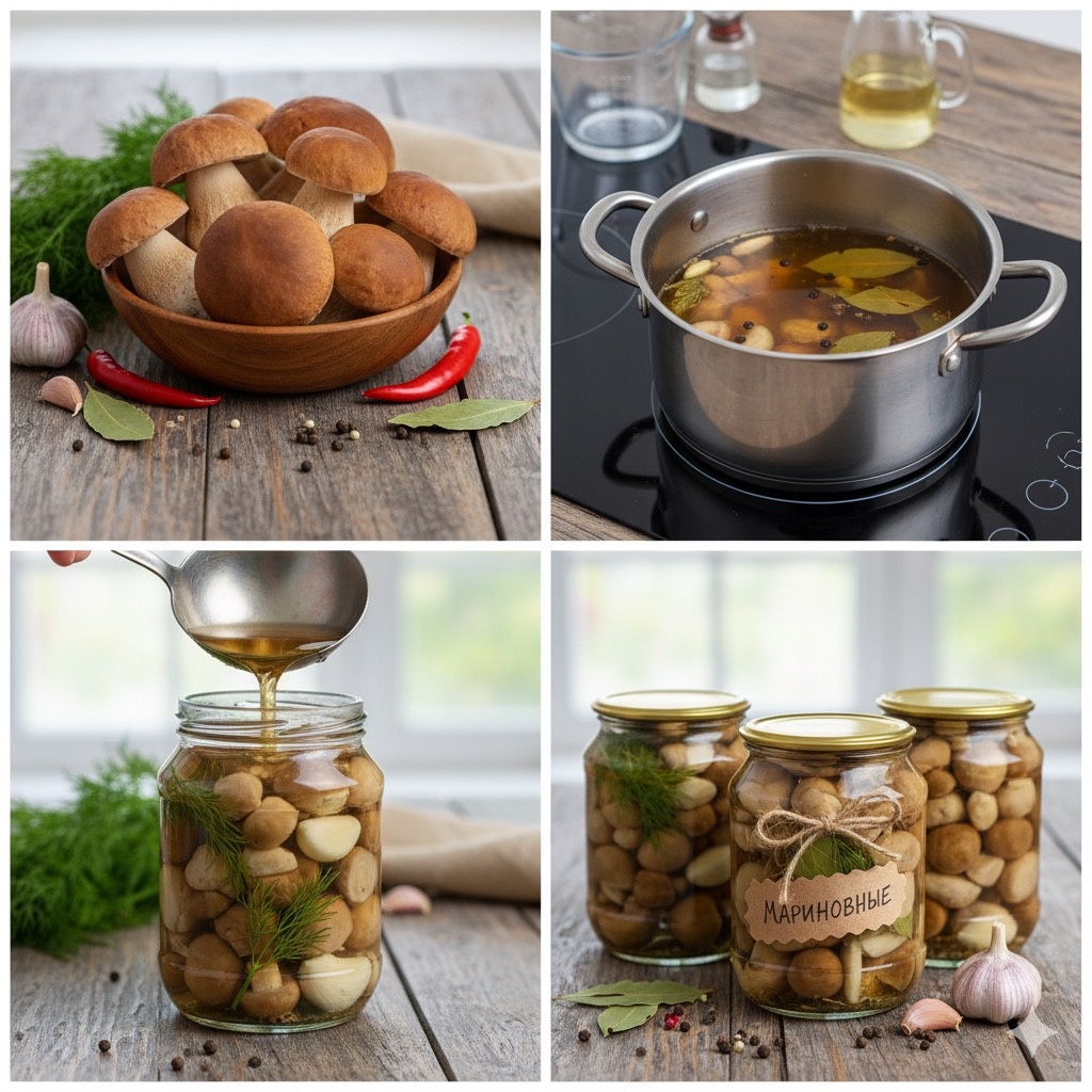 Разложи грибы вместе с маринадом по стерилизованным банкам.
