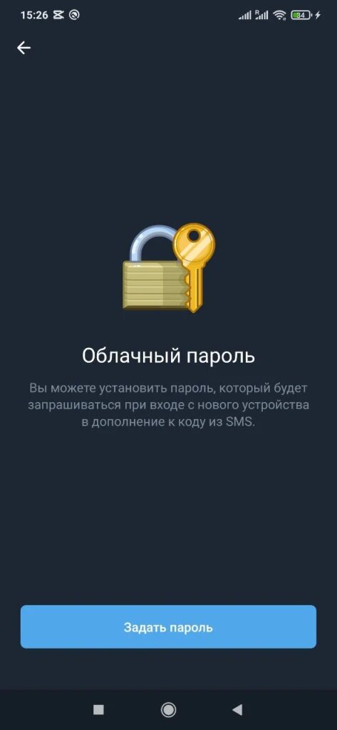Облачным паролем может быть комбинация цифр или слово. Причем после его введения система сама предлагает придумать вопрос, который поможет вам вспомнить облачный пароль (если вдруг вы его забудете). Кроме того, при установке областного пароля Telegram запросит вашу элект