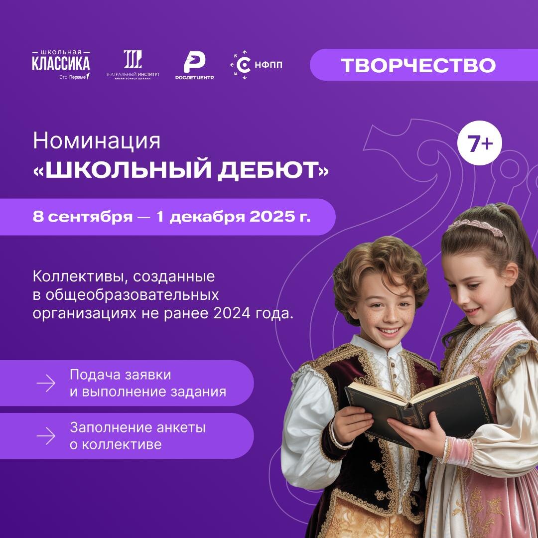 «Школьная классика» объявляет в розыск 🧐 самых талантливых и ярких ребят со всей России! В новом сезоне главного театрального проекта Движения Первых тебя и твоих друзей ждёт шесть командных номинаций. А для самых творческих открыта «Индивидуальная номинация». Её победители смогут принять участие в создании красочной постановки под руководством Театрального института имени Бориса Щукина. ⬆️ Узнавай подробности на карточках и приступай к творческим задания — по ссылке! 🎭 Движение Первых. Творчество #ШкольнаяКлассика