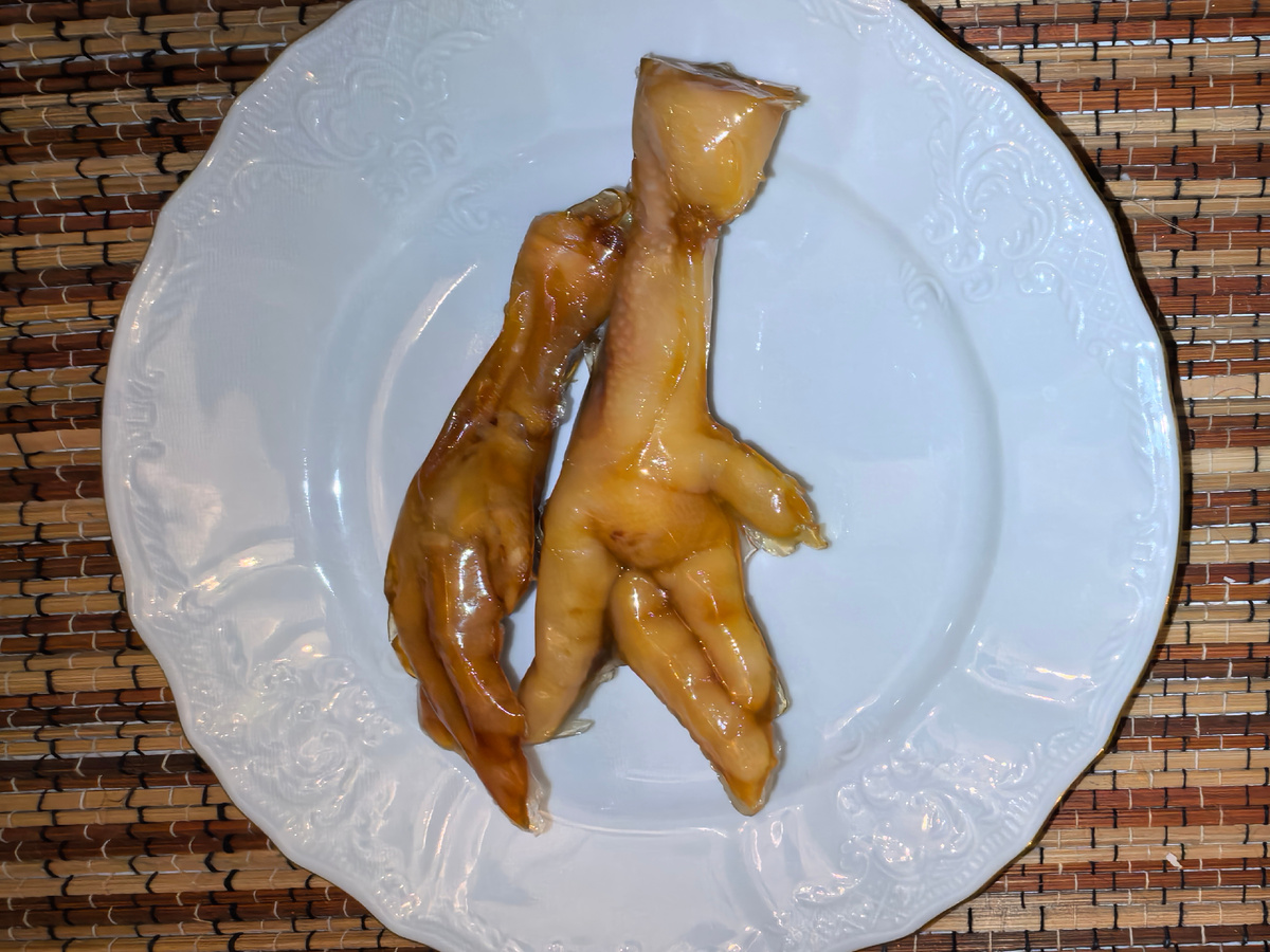 Куриные лапки маринуют в смеси специй, соевого соуса и других ароматных ингредиентов, а затем коптят до золотистой корочки. Этот процесс придает удивительный вкус и текстуру — хрустящие снаружи и нежные внутри.