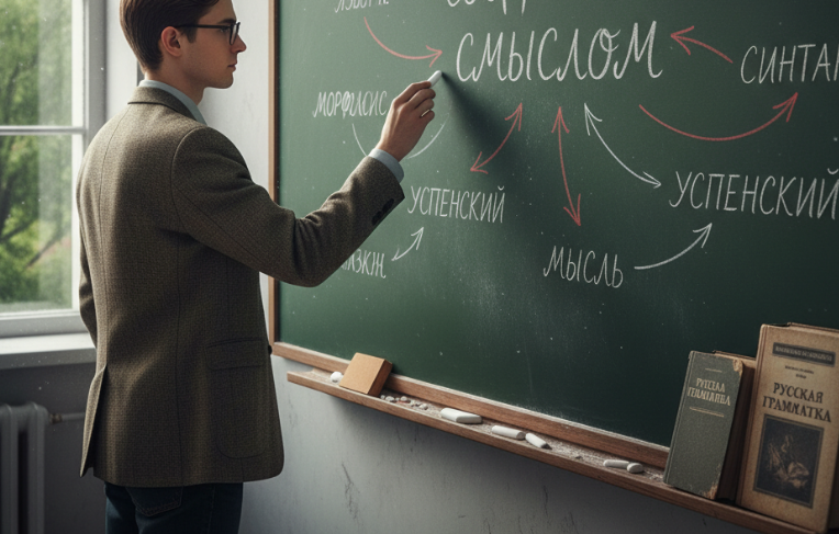 Что изучает грамматика? Это раздел языковедения, который помогает нам понимать и правильно использовать слова. Л. В. Успенский утверждает: «Грамматика позволяет нам связать между собой любые слова, чтобы выразить любую мысль о любом предмете». Я согласна с автором: именно грамматика даёт возможность из набора слов строить фразы и предложения, в которых точно отражается наша мысль. В качестве первого аргумента можно привести пример из рассказа Бориса Житкова «Галка». В предложении «Галка села на крышу» слова «Галка» и «крышу» связаны с помощью предлога «на» и изменением окончания существительного. Благодаря грамматическим правилам, мы понимаем, кто совершает действие и где оно происходит. Ещё один пример — предложение «Петя кормил галку хлебом». Грамматика позволяет с помощью падежей и окончания определить, кто кормит, кого и чем. Без соблюдения грамматических норм фраза потеряет смысл. Таким образом, грамматика — это основа любого языка. Она помогает нам точно выражать свои мысли, связ