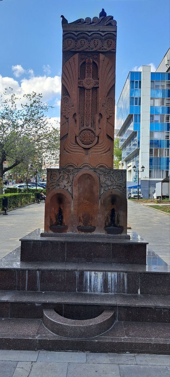 САРАТОВ. По пешеходной улице мы дошли до Волги. Здесь установлено несколько памятников. Один из них хачкар - дар Армении городу Саратову. Памятник городовому. Памятник Константину Федину - русский советский писатель и журналист. К нашему сожалению, о таком даже и не слышали. #саратов