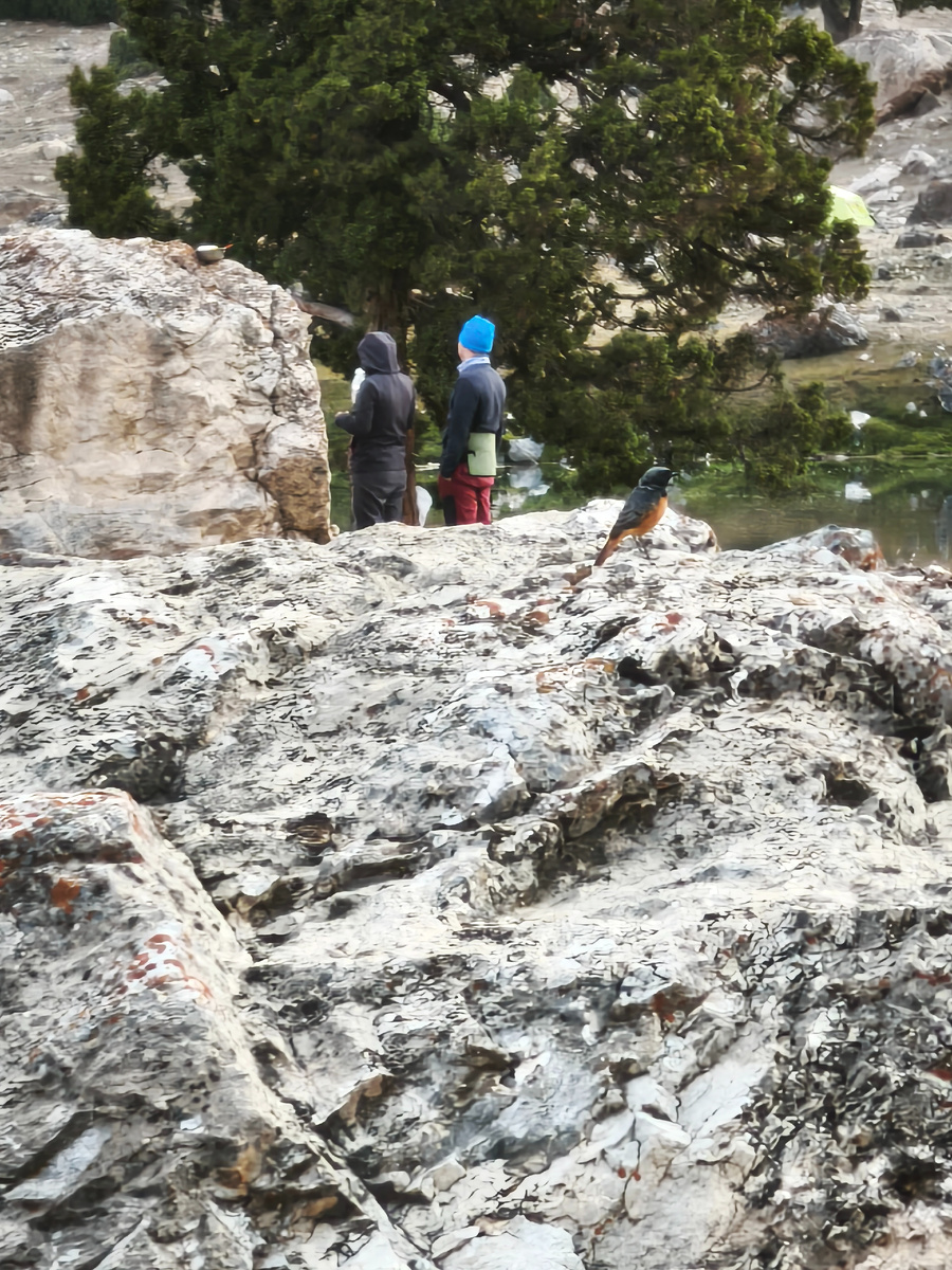 Утро. Пташки тут Утренняя красота озёр Лагерь Приближаю снежники Вот это затрак - с видом на... А воооон по той тропе мы днём ранее поднимались. Ещё птичка. Ну, а у нас радиалочка на перевал Флюорит. Красота.. Ослики... Надо речку перейти. Утонуть тут, конечно, невозможно, но промочить ноги тоже не хочется..