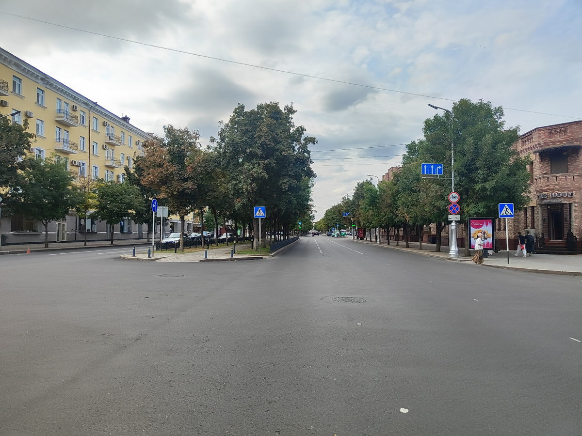 У начала улицы Эсамбаева расположена большая пустая площадь Ахмата Кадырова, на краю которой установлен знак нулевого километра.