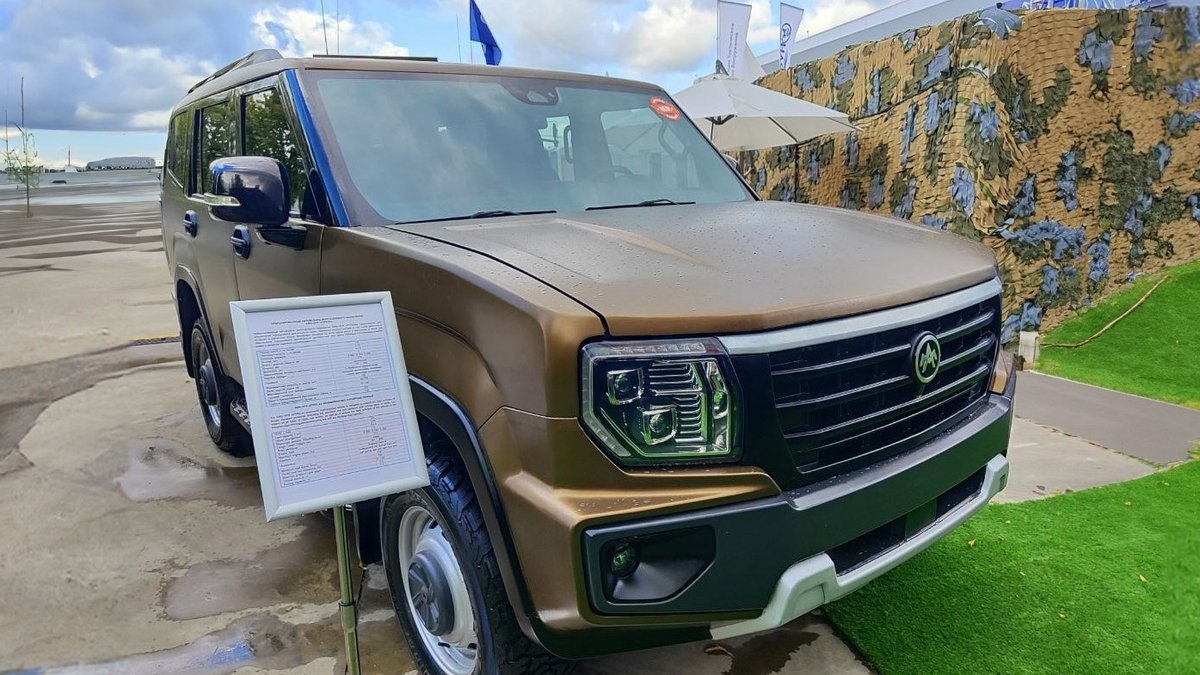 Длина автомобиля составляет около 5 метров, а дорожный просвет достигает 250 мм, что позволяет машине уверенно преодолевать водные преграды глубиной до 1 метра. Под капотом установлен 2,5-литровый турбодизельный двигатель мощностью 150 л.с., работающий в паре с 6-ступенчатой механической коробкой передач. Привод - полный. Передняя подвеска независимая пружинная, задняя - рессорная. Салон оснащен современной приборной панелью с информационным экраном, мультимедийной системой с сенсорным дисплеем, двухзонным климат-контролем и электронными органами управления трансмиссией. Отделка выполнена из искусственной кожи и ткани. По имеющимся данным, новый внедорожник разработан Арзамасским машиностроительным заводом в Нижегородской области -предприятием, специализирующемся на выпуске военной техники и спецтранспорта. Завод включен в санкционные списки ЕС и США.