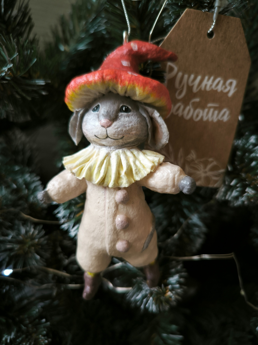 Знакомьтесь, это Шляпник. Не тот, из Страны Чудес, а наш, лесной. Мышонок-грибник, который точно знает, в какой шляпке будет выглядеть особенно стильно. Этот кроха не бежит от кота и не прячется в норке. Его стихия — самые волшебные уголки спящего леса, где упавшая шишка может стать табуреткой, а шляпка мухомора — самым модным головным убором сезона. Из чего же, из чего же сделан этот мальчик? Всё гениальное — просто, а всё волшебное — и того проще. В его основе нет пластика или сложных механизмов. Только: · Мягкая вата, из которой формируется тельце, лапки, острая мордочка и даже пушистая шёрстка. · Самый обычный клейстер (да-да, тот самый, из крахмала и воды!), который делает вату податливой, как глина, и прочной, как папье-маше. · Яркие акриловые краски, которые вдыхают в него жизнь: прорисовывают любопытные бусинки-глазки, розовые ушки и ту самую аутентичную пятнистую шляпку. · Акриловый лак для защиты. Он навечно запечатывает характер мышонка, придает легкий блеск его глазкам