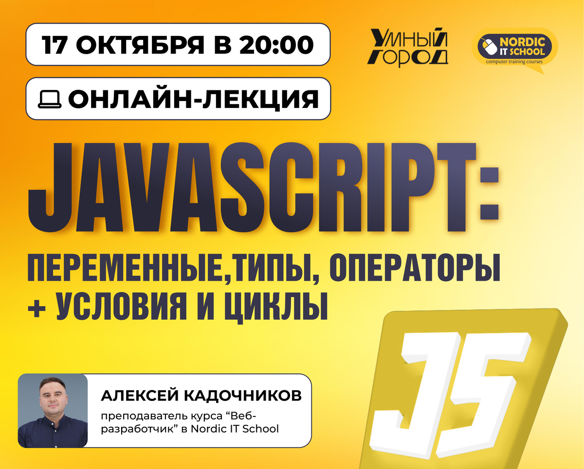 17 октября в 20:00 приглашаем вас на онлайн мастер-класс «JavaScript: переменные, типы, операторы + условия и циклы».