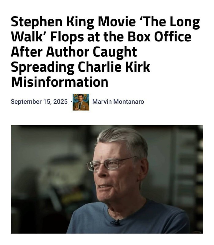 Триллер «Долгая прогулка» не оправдал ожиданий в прокате, собрав всего $11 млн за первый уикенд. Это один из худших результатов среди экранизаций произведений Стивена Кинга. Не стоит беспокоиться за создателей — бюджет картины составил всего $20 млн. Интересно, что 31 год назад аналогичная судьба постигла «Побег из Шоушенка»: фильм не окупился, но впоследствии стал культовым. Постмейкер - автоматическое ведение канала 🤖 Анимация | СhatGPT-4 | Помощь с резюме